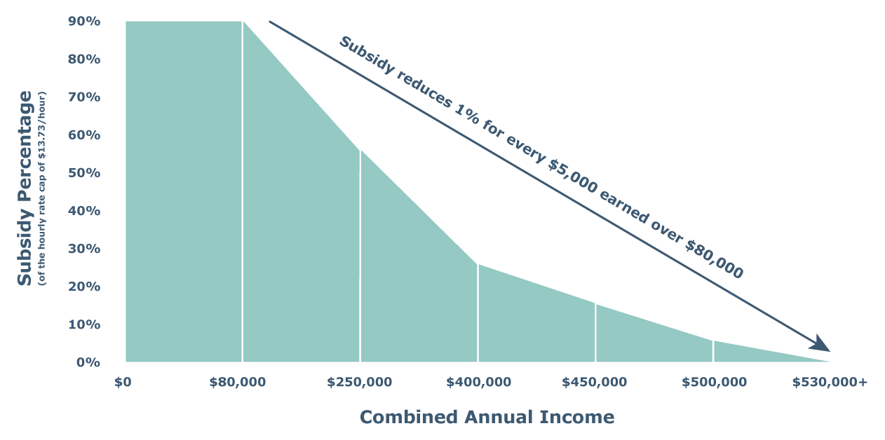 *Based on eldest or only child. Families with more than one child may be eligible for a higher subsidy for their second child and younger children.